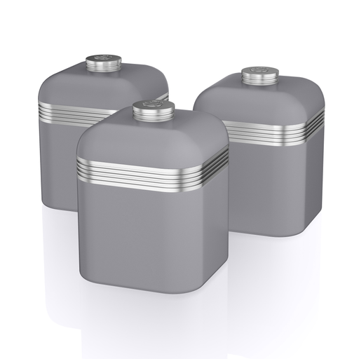 Swan Retro Set of 3 Canisters VINTAGE KITCHEN STORAGECombining style and practicality with a vintage inspired design, these 3 storage canisters will inject new life into your kitchen d cor. STORE YOUR EVERYDAY ITEMSMade from a durable iron body, these canisters are a great multi purpose storage solution. Keep your teabags, coffee, sugar or other loose ingredients on your worktop for easy access, with airtight lids to lock in the freshness. LARGE 1 LITRE CAPACITYStore large amounts of teabags, sugar, coffee or other loose ingredients. Perfect for busy households. They also feature non slip bases to protect your worktop from scratches. EASY PULL UP LIDThe decorative handles with chrome accents feature comfortable grips to pull the lid off for hassle free opening. CARE INSTRUCTIONSRequires just a simple wipe with a cloth to clean and maintain the quality colour coated finish. THE RETRO COLLECTIONThe Swan Retro collection blends both style and functionality. It features a diverse colour palette inspired by the chic 1950s and 1960s to compliment all d cors. Transform and inject new life into your everyday kitchen items. 3 YEAR GUARANTEEThese Swan Retro storage canisters come with a 1 year manufacturer s guarantee with an additional year when you register the product. AN ESTABLISHED LIFESTYLE BRANDCelebrating style, innovation high quality design since the 1920s, Swan is a fixture in homes across the globe. We love what we do. Whether it s helping make the perfect drink, entertaining friends loved ones or ensuring your home looks its best we are a lifestyle brand for everyday moments. Our pieces combine traditional contemporary design with outstanding performance, all backed up by dependable service.The Swan Retro set of 3 storage canisters are a stylish solution to storing your everyday essentials. Each canister features a durable iron body and a large 1 litre capacity to store tea, coffee, sugar or other loose ingredients for easy access on your kitchen worktop, complete with airtight lids to lock in the freshness. The large chrome accented lids provide a comfortable grip, making them easy to open and access the contents. These kitchen canisters combine practicality with a vintage design, offering a 1950s and 1960s inspired colour scheme to inject new life into your kitchen. All canisters have non slip feet for added stability and to protect your worktop from scratches. The kitchen storage canisters form part of the Swan Retro breakfast and storage collection. They are easy to clean, requiring just a simple wipe down with a damp cloth.