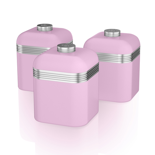 Swan Retro Set of 3 Canisters VINTAGE KITCHEN STORAGECombining style and practicality with a vintage inspired design, these 3 storage canisters will inject new life into your kitchen d cor. STORE YOUR EVERYDAY ITEMSMade from a durable iron body, these canisters are a great multi purpose storage solution. Keep your teabags, coffee, sugar or other loose ingredients on your worktop for easy access, with airtight lids to lock in the freshness. LARGE 1 LITRE CAPACITYStore large amounts of teabags, sugar, coffee or other loose ingredients. Perfect for busy households. They also feature non slip bases to protect your worktop from scratches. EASY PULL UP LIDThe decorative handles with chrome accents feature comfortable grips to pull the lid off for hassle free opening. CARE INSTRUCTIONSRequires just a simple wipe with a cloth to clean and maintain the quality colour coated finish. THE RETRO COLLECTIONThe Swan Retro collection blends both style and functionality. It features a diverse colour palette inspired by the chic 1950s and 1960s to compliment all d cors. Transform and inject new life into your everyday kitchen items. 3 YEAR GUARANTEEThese Swan Retro storage canisters come with a 1 year manufacturer s guarantee with an additional year when you register the product. AN ESTABLISHED LIFESTYLE BRANDCelebrating style, innovation high quality design since the 1920s, Swan is a fixture in homes across the globe. We love what we do. Whether it s helping make the perfect drink, entertaining friends loved ones or ensuring your home looks its best we are a lifestyle brand for everyday moments. Our pieces combine traditional contemporary design with outstanding performance, all backed up by dependable service.The Swan Retro set of 3 storage canisters are a stylish solution to storing your everyday essentials. Each canister features a durable iron body and a large 1 litre capacity to store tea, coffee, sugar or other loose ingredients for easy access on your kitchen worktop, complete with airtight lids to lock in the freshness. The large chrome accented lids provide a comfortable grip, making them easy to open and access the contents. These kitchen canisters combine practicality with a vintage design, offering a 1950s and 1960s inspired colour scheme to inject new life into your kitchen. All canisters have non slip feet for added stability and to protect your worktop from scratches. The kitchen storage canisters form part of the Swan Retro breakfast and storage collection. They are easy to clean, requiring just a simple wipe down with a damp cloth.