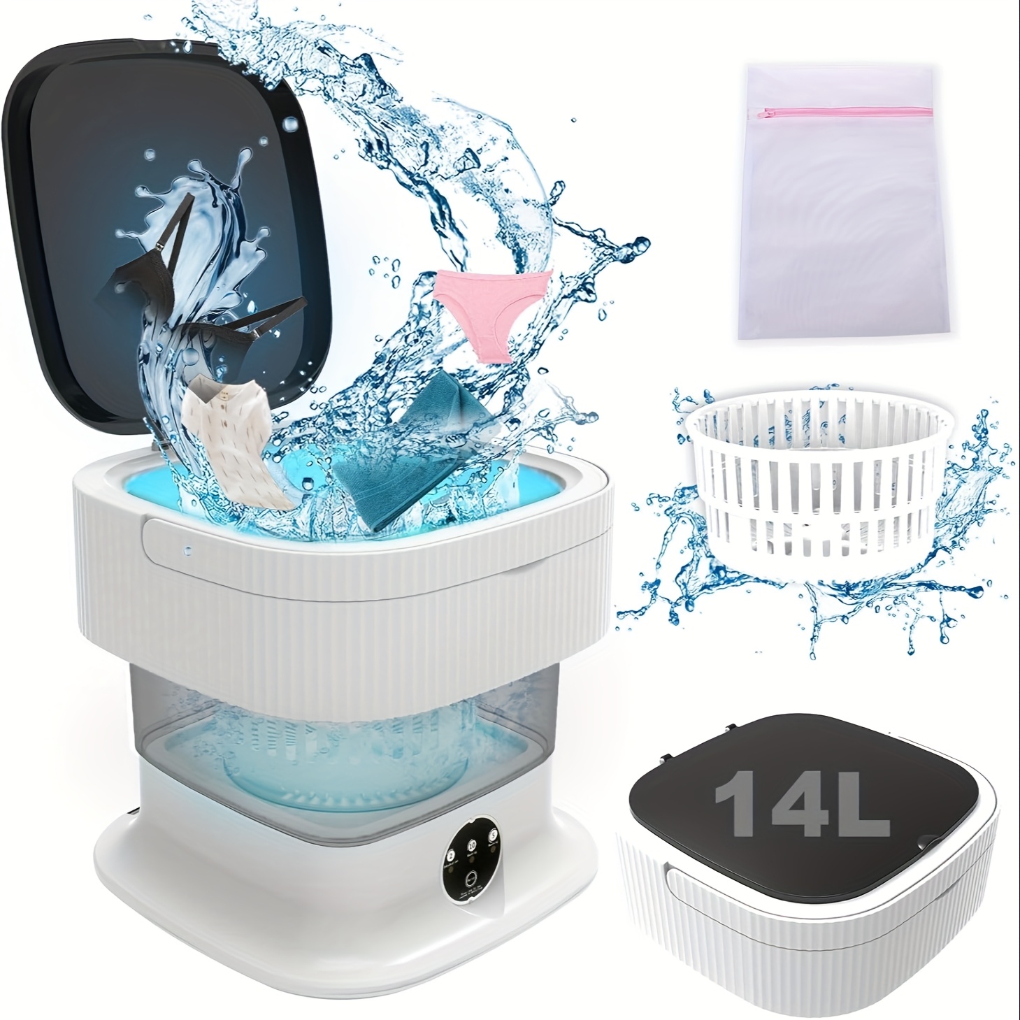 TEMU Portable Washing Machine, 14l 2.2kg 2-in-1 Mini Laundry And Dryer With Washing Bag, Suitable For Underwear, Baby Clothes, Socks, Portable Laundry Machine For Dormitory, Camping, Rv Use